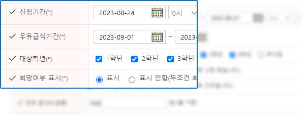 우유급식 기간을 설정하여 신청 가능