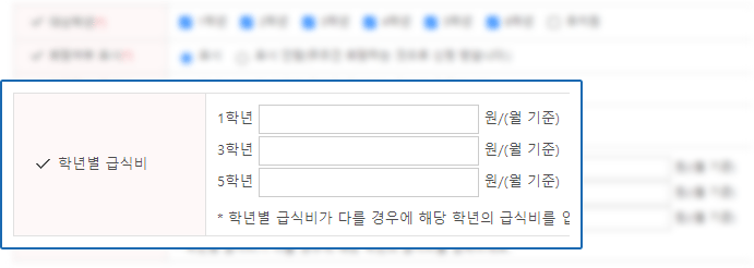 학년별 우유급식비 설정 가능